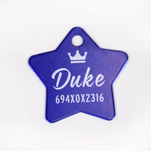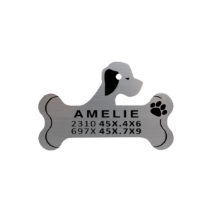 Ταυτότητα κατοικιδίου χαραγμένη με το μήνυμά σας σε κόκκινο χρώμα (λευκό το θέμα). Χάραξη θέματος με laser σε επιστρωμένο ακρυλικό υλικό 2-χρωμάτων. Διαστάσεις: ~27x33mm